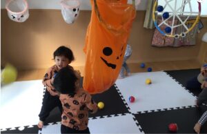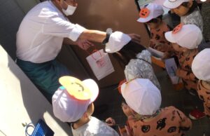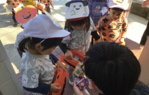 朝登園すると玄関に置いてあった子どもたち手作りのジャックオランタンのお菓子ボックスを見て、ハロウィン行事だと大喜び✨